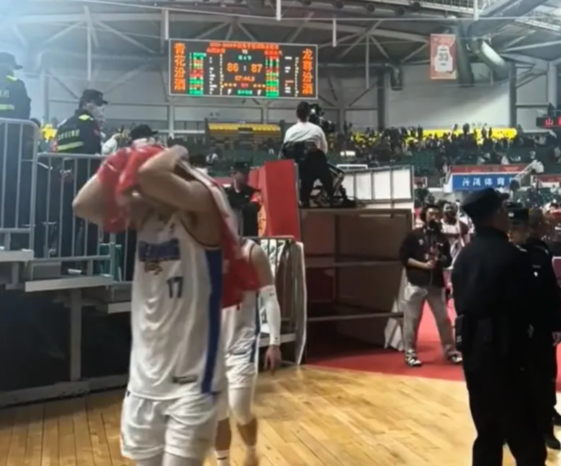 但本场比赛并没有轻易结束,山西男篮的球迷还有更多的表现。赛后,北京男篮的球员往球员通道走,此时山西男篮主场的球迷开始冲他们吐口水,还吐到了北京男篮外援杰曼的头上。